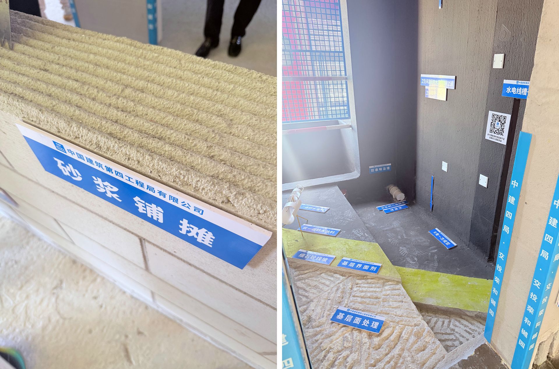 在观摩过程中,与会代表深入了解了“两道设防”的防渗漏体系、严格控制的外墙淋水试验、精确到毫米的防潮层下反高度等精细化施工标准。特别是对防串味治理中采用的双止逆阀、存水弯等设施,以及防抹灰开裂中使用的J90界面处理剂等创新工艺表现出了浓厚兴趣。