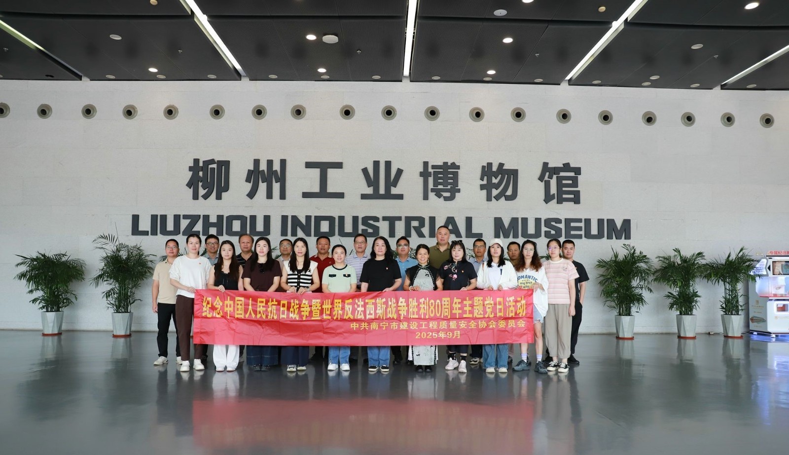 9月26-27日,南宁市建设工程质量安全协会党委书记刘新华同志率领协会党委委员、下属各党支部书记、党务工作者等一行赴广西柳州抗日飞虎队遗址纪念馆、柳州工业博物馆开展纪念中国人民抗日战争暨世界反法西斯战争胜利80周年主题党日活动。此次活动旨在激励党员同志从历史中汲取奋进力量,提升组织凝聚力,为实现中华民族伟大复兴贡献力量。