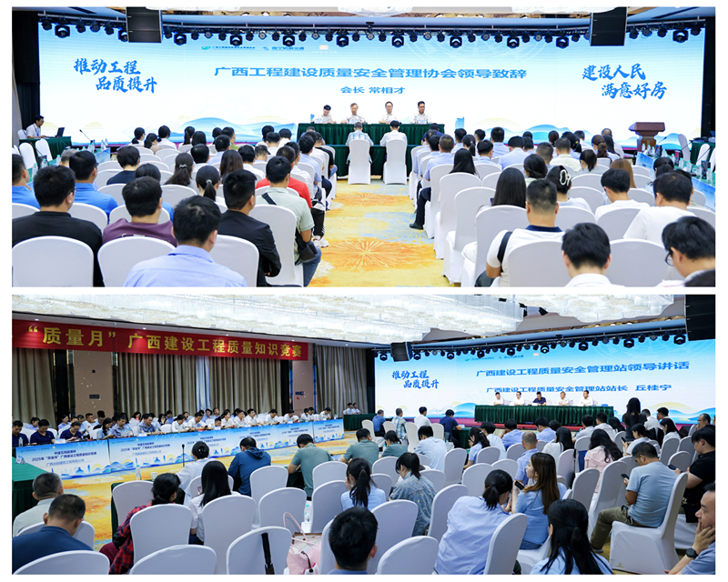 2025年9月25日,正值全国第48个“质量月”活动深入开展之际,由广西工程建设质量安全管理协会主办、中国建筑第五工程局有限公司承办的“中建五局超英杯·2025年‘质量月’广西建设工程质量知识竞赛”在南宁成功举行。此次活动作为广西住房城乡建设系统“质量月”的重点项目,不仅搭建起行业交流与能力提升的有效平台,更有力推动了全区建设工程质量意识的普及与深化。广西建设工程质量安全管理站站长丘桂宁出席活动并讲话。