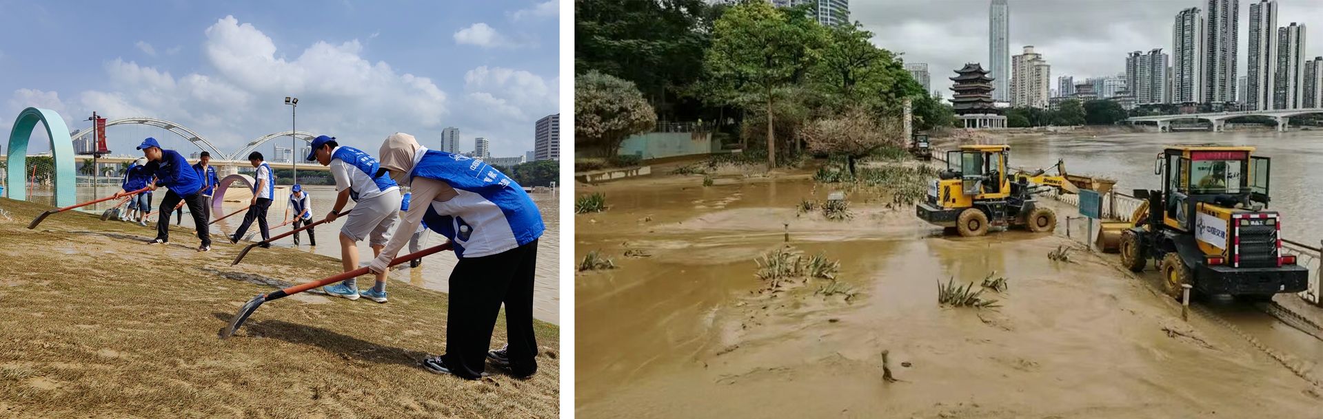 此前洪峰肆虐期间,中铁四局项目部已闻 “汛” 而动,紧急集结精干力量,携 4 台铲车、9 台洒水车、2 台吸污车等重型机械设备,火速奔赴民生码头、孔庙码头、牛湾电厂等受灾严重区域。在清淤复产一线,中铁四局人员与机械默契配合、协同作战,不畏淤泥脏臭与任务繁重,昼夜不停投身淤泥清理、道路冲洗工作。他们以 “一方有难,八方支援” 的实际行动,彰显央企在关键时刻挺身而出、服务地方、回馈社会的强烈责任担当,成为防汛救灾与灾后重建中的 “中坚力量”。