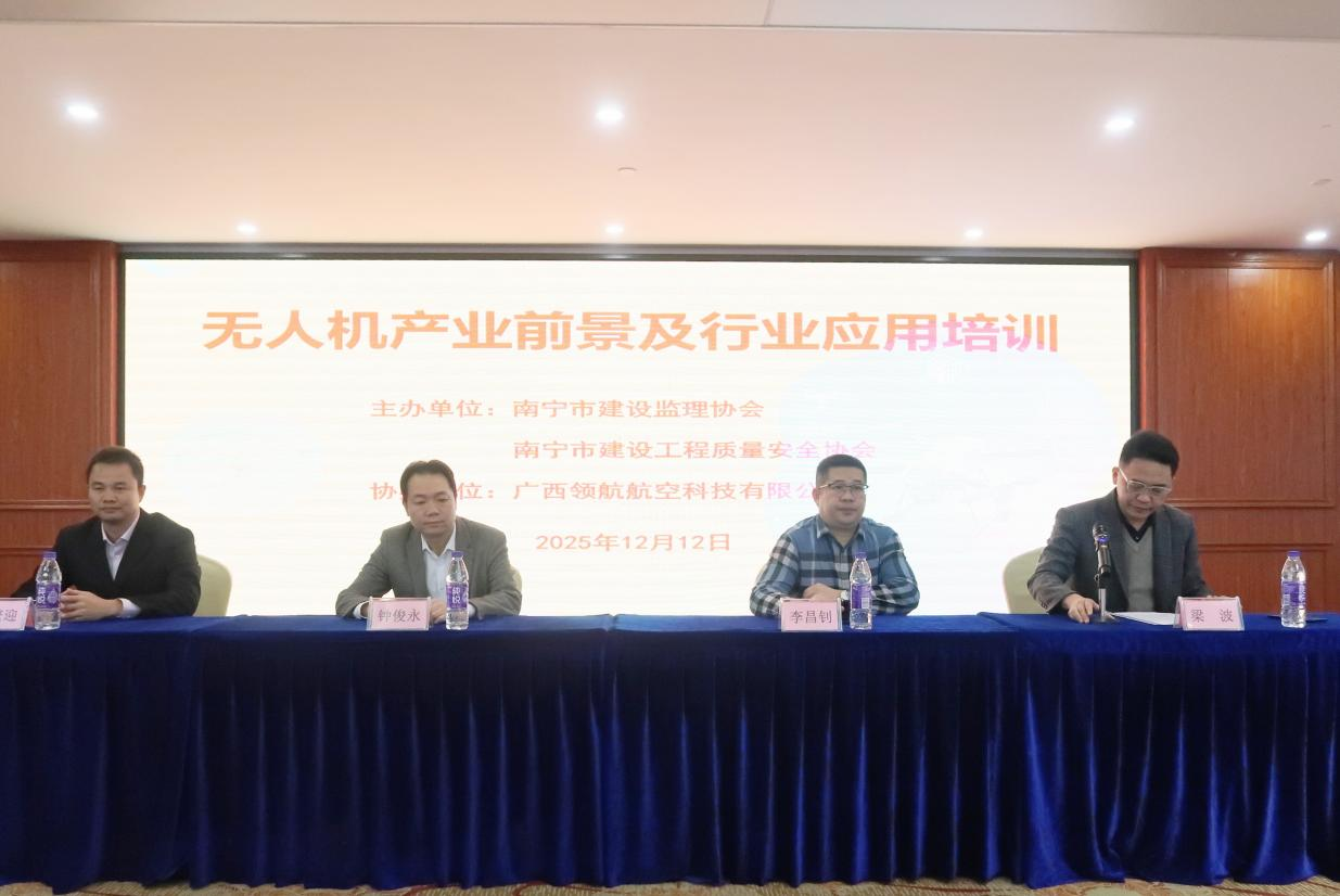 2025年12月12日,南宁市建设监理协会与南宁市建设工程质量安全协会共同主办、广西领航航空科技有限公司协办的“无人机产业前景及行业应用培训会”成功举行,来自施工、检测、监理等领域的50余家企业、158名从业人员参与培训。南宁市建设工程质量安全协会驻会副会长李昌钊、南宁市建设监理协会副会长兼秘书长梁波出席会议。